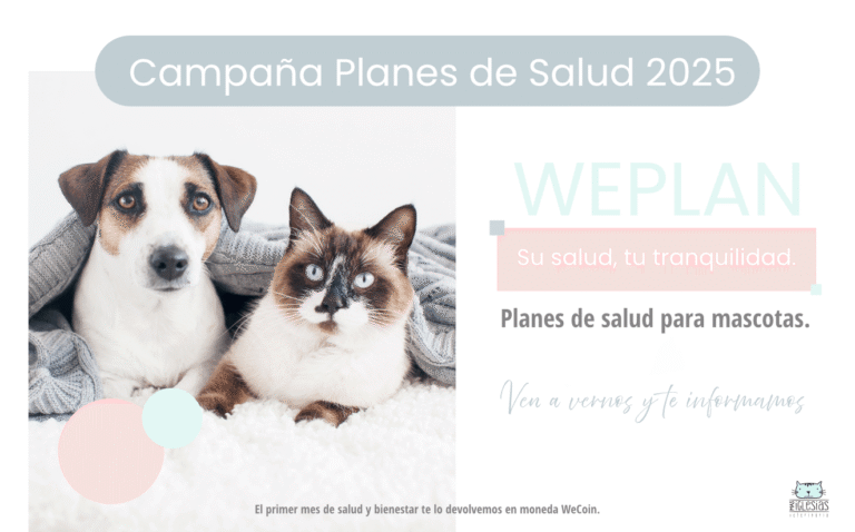 Es momento de salud y tranquilidad, con nuestros WEPLAN: tu peludo tendrá la mejor prevención y los mejores servicios veterinarios y tú, la mejor atención y el mayor ahorro. Aprovecha nuestra campaña y contrata su Plan de Salud, porque te regalamos un mes de se WePlan. Y si ya lo tienes, vente con un amigo, familiar o conocido que no disfrute aún de todas tus ventajas y os regalamos a todos un mes de salud y bienestar, con su nuevo WePlan.